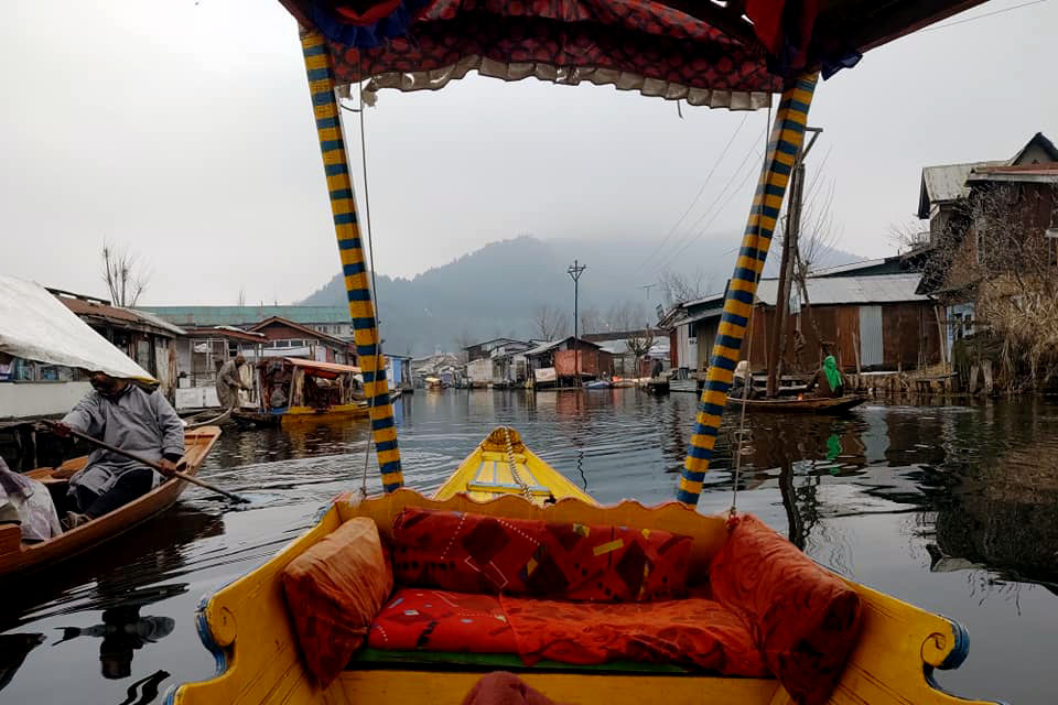 During her last day in the Valley, Kar takes a shikara — a type of wooden boat — and visits various shops that operate out of houseboats on Dal Lake, where she bought a sari, her first purchase while in Kashmir.