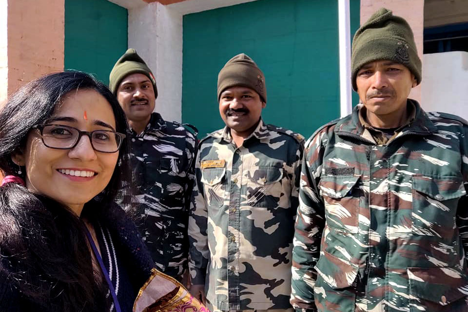 Kar (left) takes a selfie with three officials who are tasked with guarding Kheer Bhawani, and has a chat with them to get a better idea of how tense the area is. Though they were limited in what they could discuss, Kar said they mentioned how they still have to apprehend, and in some cases, even kill those militants who attempt infiltration across the border from Pakistan.