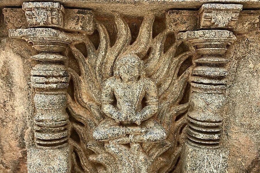 Fully surrendered to Vishnu, Prahlad fearlessly entered the flames, but Vishnu, who is not only known as the protector of the universe but also the protector of his devotees, shielded Prahlad from harm, removing Holika’s power so that she burned instead.