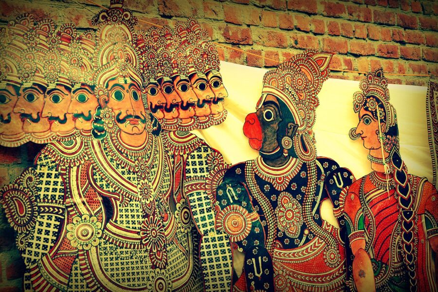 Dussehra (duh-sheh-RAH) or Vijayadashmi (vi-juhyuh-dushuh-mee) celebrates the victory of Lord Rama over the ten-headed demon King Ravana. This also marks the end of Ramalila — a brief retelling of the Ramayana and the story of Rama, Sita, and Lakshman in the form of dramatic reading or dance. It also signifies the end of negativity and evil within us (vices, biases, prejudices) for a fresh new beginning. Dussehra often coincides with the end of Navratri and Duga Puja, and celebrations can last ten days, with huge figures of Ravana set ablaze as a reminder that good always prevails over evil.