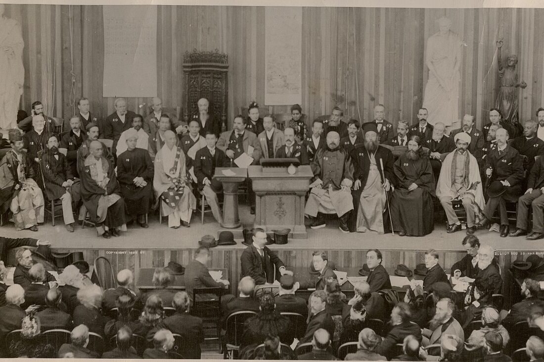 In a written paper to promote the event, the organizers said it would aim “to unite all Religion against irreligion; to make the golden rule the basis of this union; and to present to the world the substantial unity of many religions in the good deeds of the religious life.”